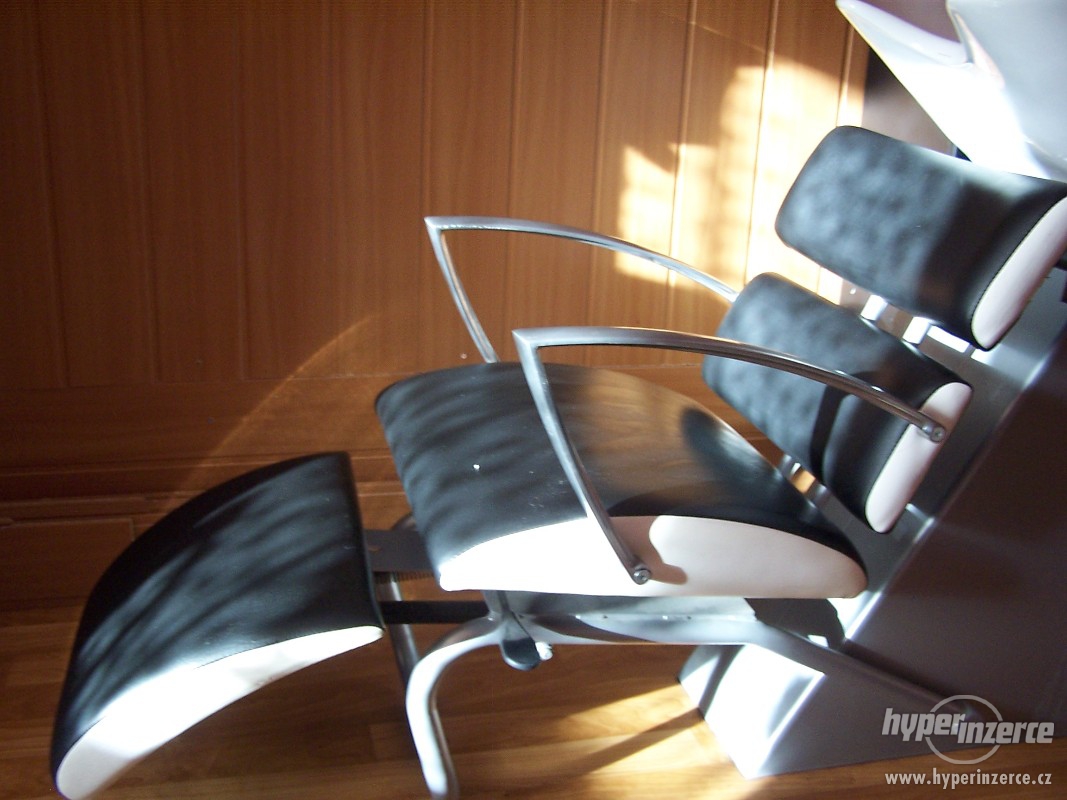 Vybavení do kadeřnického salonu.Nadčasový desing černá koženka s bílými doplnky chromová madla i hydraulika.2x křeslo /á 4000 kč/mycí box 14 000 kč prodám pouze jako set ne jednotlivě.Dále obsluha 3 000kč černé lamino a závěsný sušák na vlasy s ramenem kč 3000 kčCelá sestava 25000 kč + dárek pojízdný vozík zdarma.Používané 1 rok. Při zájmu foto zašlu na email.Dovoz k vám mohu zajistit za cenu spotřeby benzínu,mám dodávku.